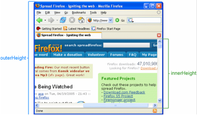 - outerHeight - 최상단부터 최하단까지의 화면의 크기