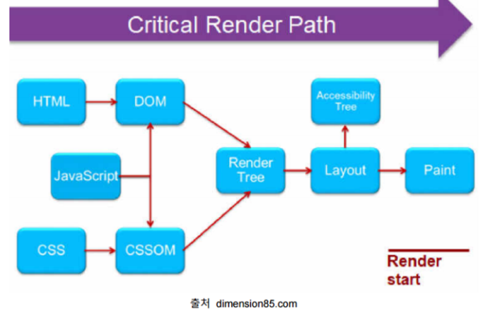 위와 같이 렌더 엔진이 문서를 읽어들이고 파싱하여 어떤 내용을 페이지에 렌더링 할 지 결정한다. 그리고 CSSOM과 DOM이 결합되어 화면에 표시되는 모든 노드의 콘텐츠 및 스타일 정보가 담긴 Render Tree를 형성하고 페이지에 표시되는 각 요소의 크기와 위치를 계산하는 Layout 단계로 이동한다. 그리고 최종적으로 실제 화면에 그리는 Paint 단계로 이르면 끝이다.